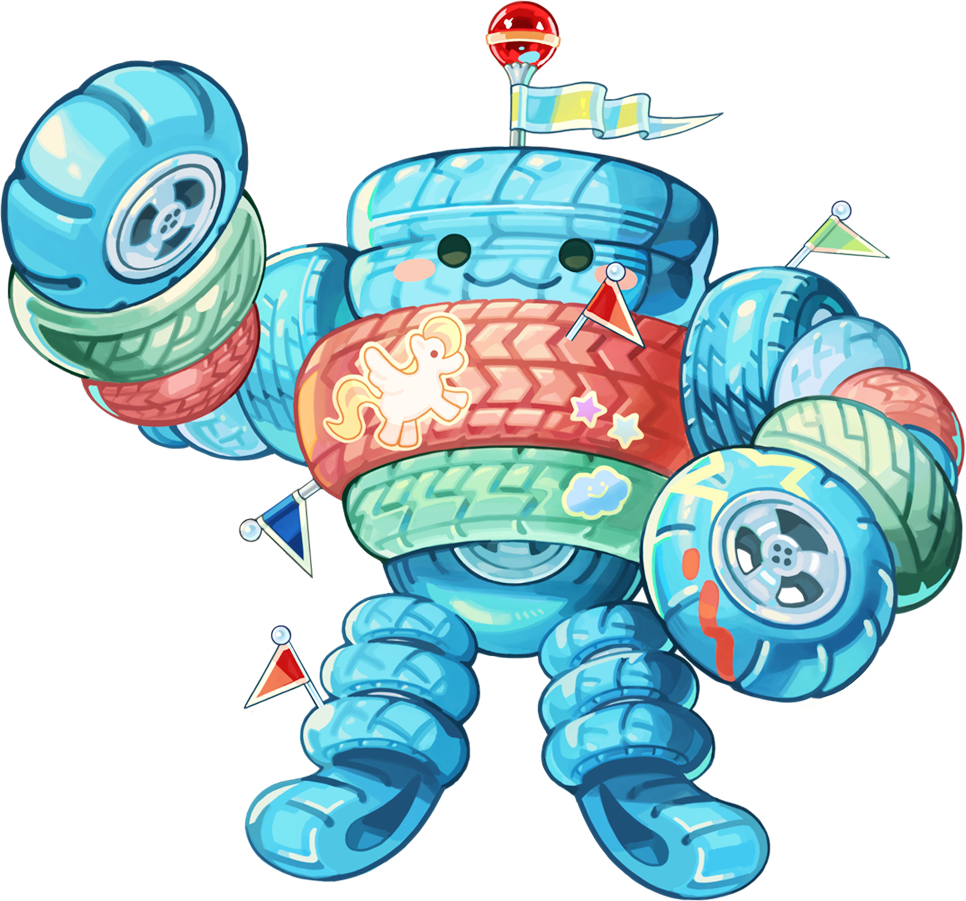 密やかに図書館に漂っていた魔力と 作家達の創造性が共鳴し、暴走した。 そんな共鳴者を求めていた様々な感情や インスピレーションは行き場を失い、 園内の遊具やおもちゃから宿り木を探し始める。 そして選ばれた片隅にうず高く積み上げられていた 数十個のカラフルなタイヤが合体し、 巨大モンスター「タイヤマン」となった。 タイヤマンは、子供達のための遊具になれたことに勝手に歓喜した。 暴走し過剰に煌めいたインスピレーションに突き動かされ、 手入れの行き届いた公園の平和を、無慈悲に蹂躙し始めた。